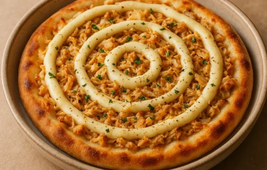 Pizza cremosa e econômica com frango desfiado e catupiry, perfeita para jantares em família ou encontros com amigos.