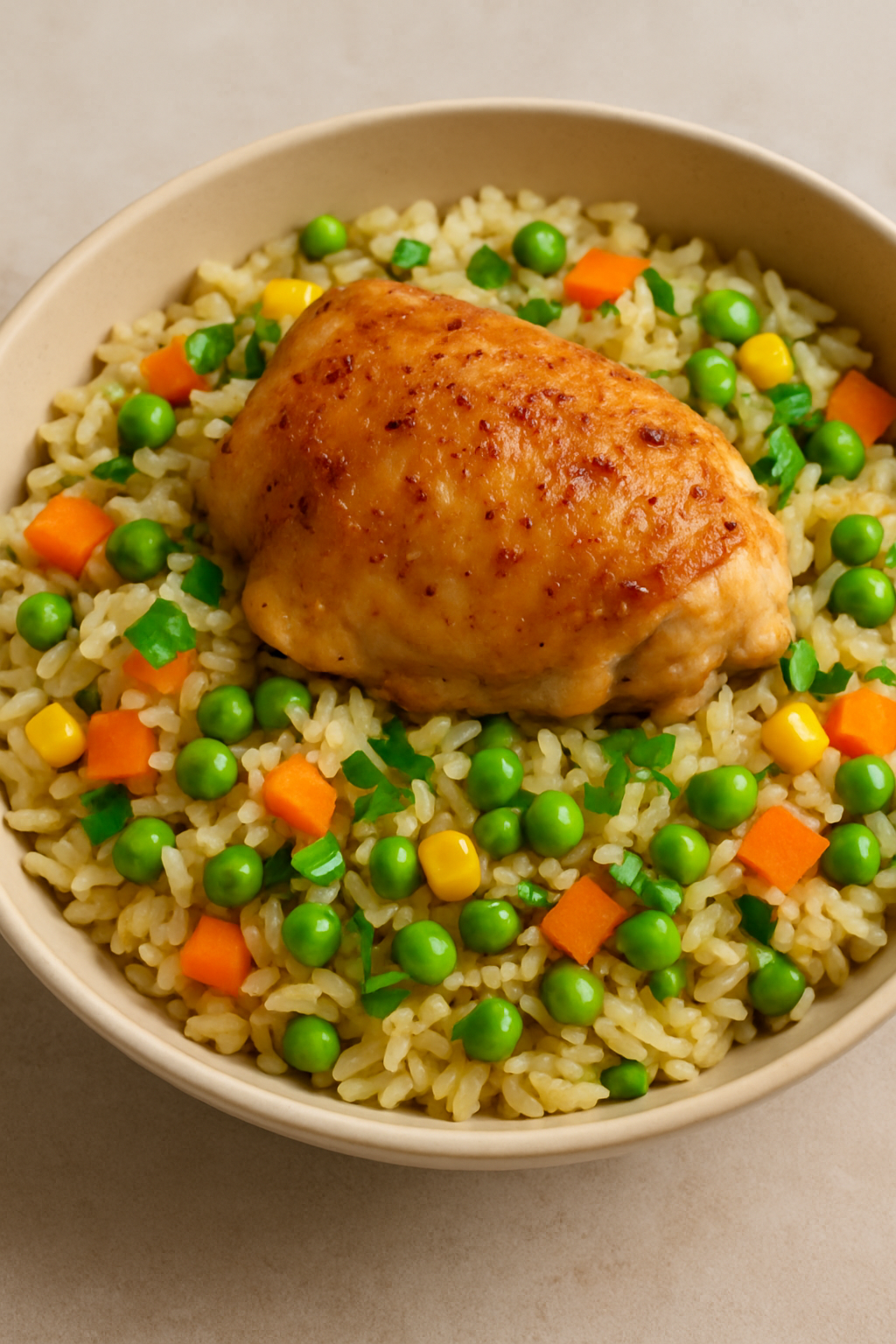 Quem disse que comer bem morando sozinho precisa ser complicado? Este arroz temperado com frango e legumes é a prova de que uma panela só pode resolver sua fome com muito sabor e praticidade. O arroz fica soltinho e perfumado, absorvendo todo o caldo do frango e dos legumes, que ficam macios e cheios de sabor. Cada garfada é uma explosão de carinho que lembra a comida da vovó, mas sem demorar horas no fogão.