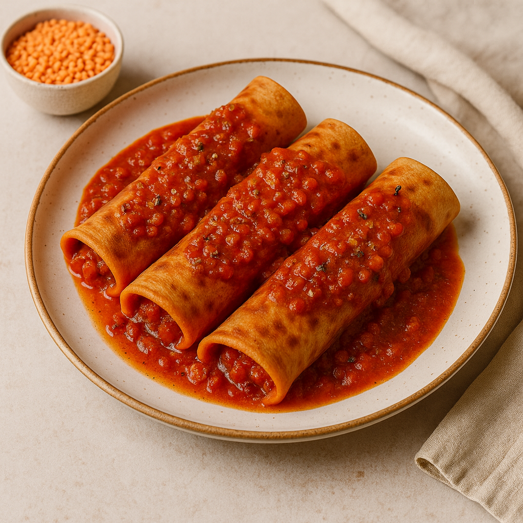 Essas panquecas de lentilha são a alternativa ideal para quem busca um lanche nutritivo e sem glúten. Feitas com lentilha vermelha e água, elas resultam em uma massa leve e rica em proteínas. O recheio com molho de tomate, preparado rapidamente na frigideira, transforma essa opção prática em uma refeição completa, saborosa e equilibrada. É perfeita para o dia a dia, para quem tem restrições alimentares, e ainda agrada a todos com seu sabor caseiro e textura macia.