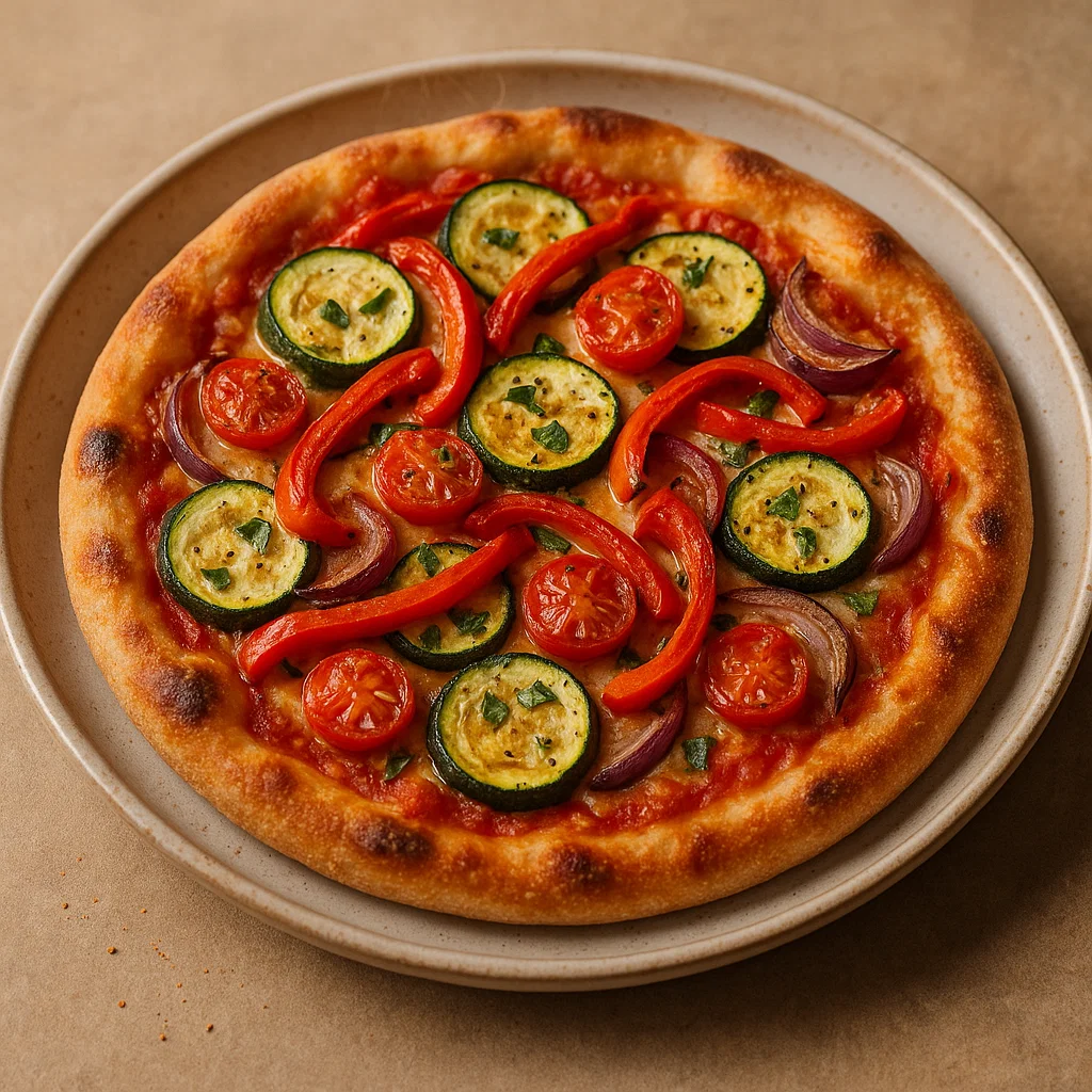 A pizza de legumes assados é colorida, nutritiva e econômica. Berinjela, abobrinha e pimentão grelhados combinam com molho de tomate caseiro e queijo, criando uma pizza leve e cheia de sabor.