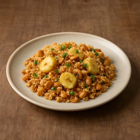 Farofa crocante e levemente doce com banana e castanhas, perfeita para inovar no churrasco e