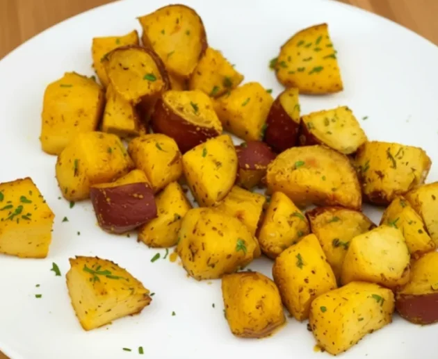 Batata doce assada no forno, crocante por fora e macia por dentro, perfeita para acompanhar