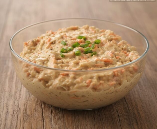 Patê cremoso e saboroso de sardinha, cenoura e azeitonas, com um toque especial de cebola