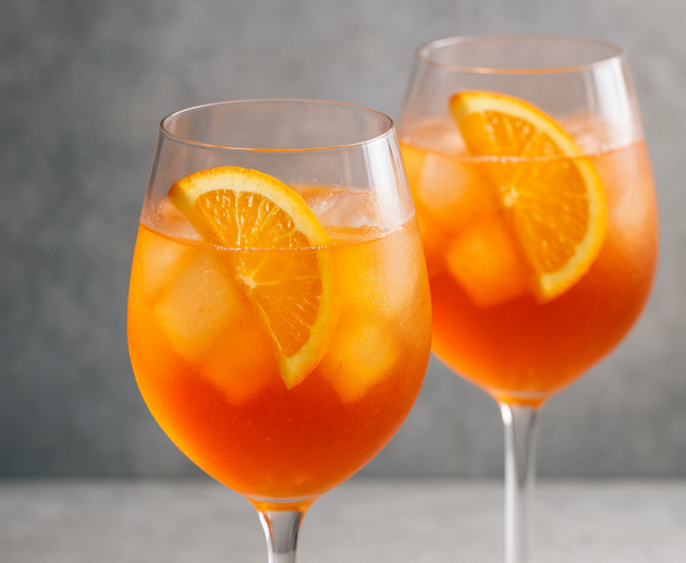 Bebida leve e refrescante com suco de uva e frutas frescas, servida em copos de