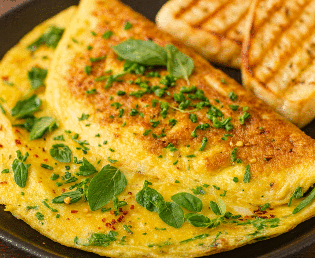 Omelete rápida e nutritiva com ovos, espinafre fresco e queijo derretido, prática, econômica e perfeita