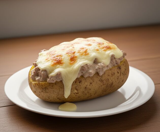 Batata Recheada com Carne Cremosa e Queijo Derretido