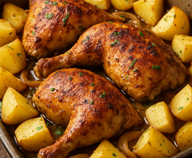 O assado que perfuma a casa e conquista o paladar! Frango suculento e batatas douradas,