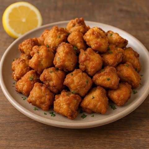 Pedaços de frango suculentos e dourados com tempero de alho e limão, perfeitos para compartilhar
