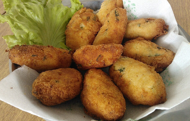 Bolinhos crocantes por fora e macios por dentro, feitos com merluza e batata, temperados com