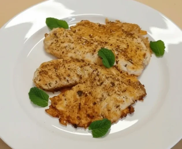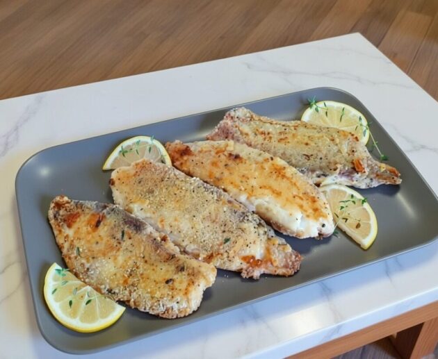 Filé de tilápia com empanado crocante de farinha de rosca, parmesão e temperos, assado no