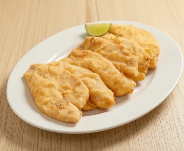 Filé de tilápia frito por imersão com uma crosta crocante e sequinha, feita com uma