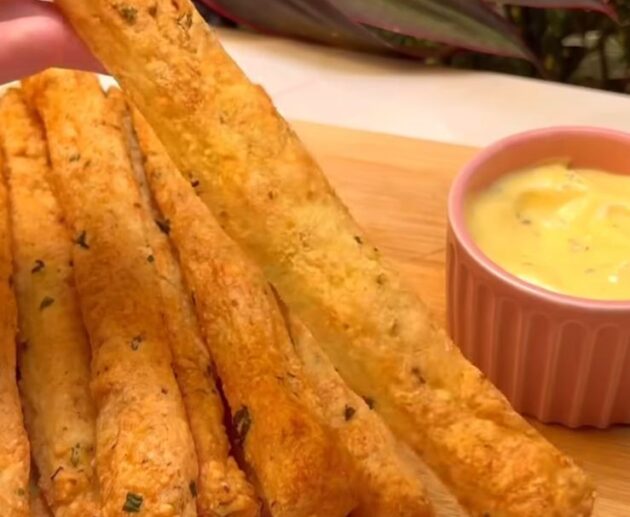 Palitinhos de batata crocantes por fora e macios por dentro, temperados com queijo e ervas,