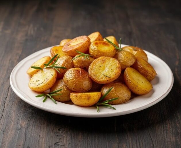 Batatas cozidas e assadas com azeite, alecrim e orégano. Uma receita simples e rápida, perfeita