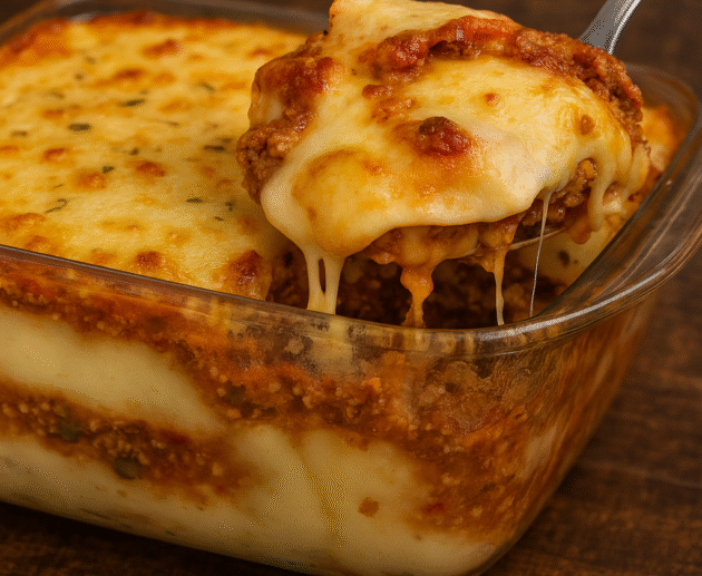 Camadas de purê cremoso e carne temperada que se combinam em uma refeição acolhedora, perfeita
