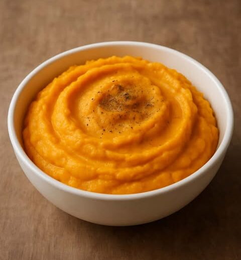 Purê cremoso e perfumado de abóbora com manteiga e noz-moscada, ideal para aquecer e reconfortar