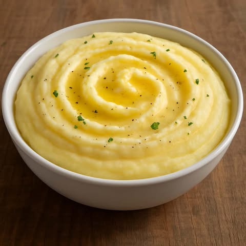 Purê de batata liso, cremoso e reconfortante, ideal para acompanhar qualquer refeição e trazer sabor