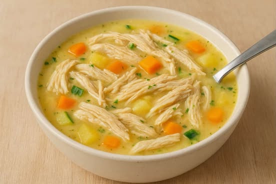 Sopa cremosa com legumes e frango que aquece e reconforta, perfeita para dias de frio