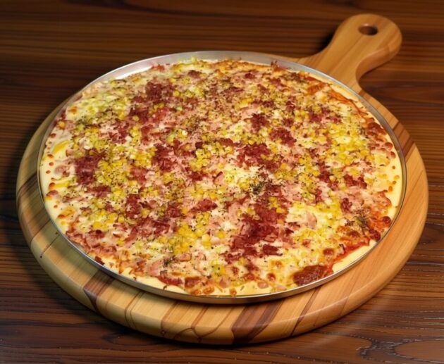 Uma massa de pizza rápida feita no liquidificador, assada em minutos, com um recheio generoso