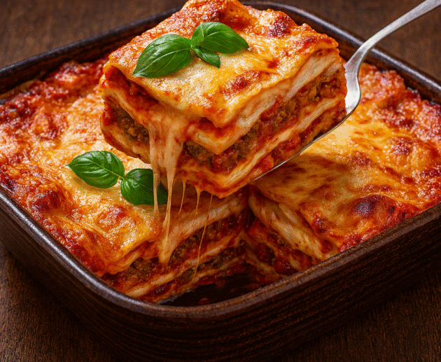 Camadas cremosas de carne e queijo que gratinam no forno, perfeitas para alimentar a família