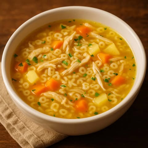 Caldo nutritivo com pequenas massinhas que remetem à infância, perfeito para aquecer a família e