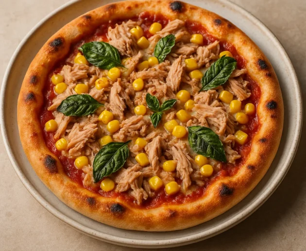 Pizza prática e econômica com atum e milho, saborosa e leve, ideal para refeições rápidas