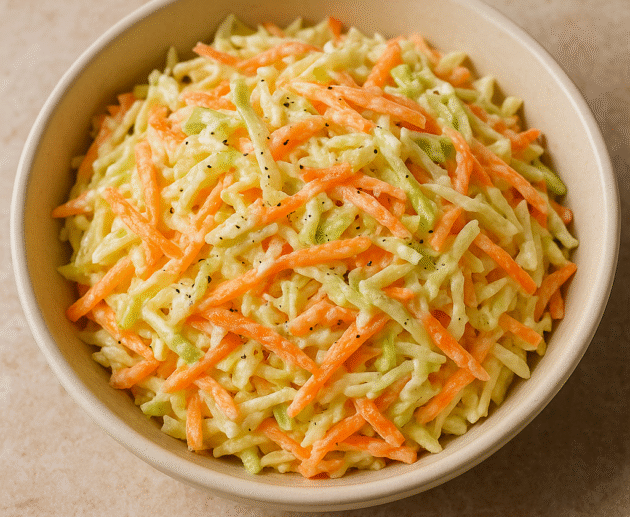 Salada cremosa com repolho e cenoura, prática, saborosa e econômica, ideal para acompanhar refeições ou