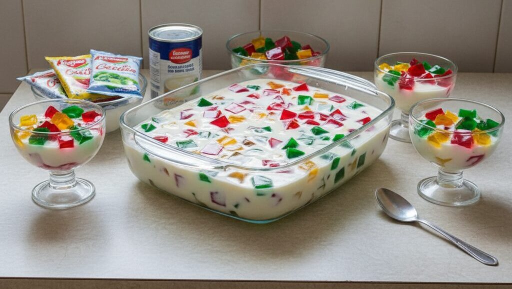 A gelatina com creme é uma daquelas sobremesas que carregam memória afetiva e afeto em cada colherada. Para muitos, é impossível não lembrar das festinhas de aniversário, almoços de domingo ou lanches da tarde em família. A combinação da gelatina colorida com a suavidade do creme transforma um simples doce em um clássico que atravessa gerações. Além do sabor, essa sobremesa é prática e econômica, perfeita para preparar rapidamente sem abrir mão da apresentação e do charme que ela traz à mesa. As cores vibrantes da gelatina contrastam com o creme delicado, tornando cada porção um convite visual e gustativo que encanta crianças e adultos. É um doce que agrada paladares variados e desperta aquele sentimento gostoso de nostalgia.