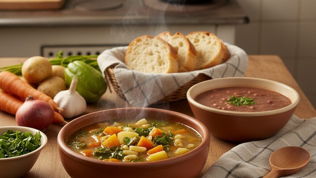 Em dias frios ou quando o dinheiro está curto, nada é mais reconfortante do que uma boa sopa. Ela é leve, nutritiva, rende muito e pode ser feita com o que há na geladeira. As sopas e caldos sempre tiveram um lugar especial na cozinha brasileira, porque aquecem o corpo e a alma. É o tipo de comida que reúne a família e transforma o simples em especial. Fazer uma boa sopa é um gesto de carinho e também uma ótima maneira de aproveitar ingredientes que sobrariam esquecidos.