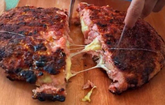Uma manta de linguiça suculenta recheada com queijos e grelhada sob pressão para ficar crocante por fora e derretida por dentro.