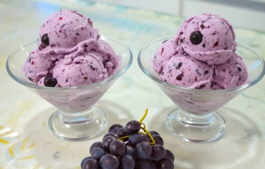 Sorvete cremoso e saudável, feito com apenas uvas congeladas e whey ou leite em pó. É fácil de fazer e ideal para um lanche refrescante.