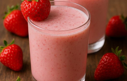 Batida doce e cremosa com morango, refrescante e econômica, perfeita para animar festas com amigos sem gastar muito.