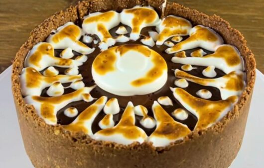 Uma torta que combina base crocante de biscoito, recheio cremoso de ganache meio amarga e cobertura de merengue.
