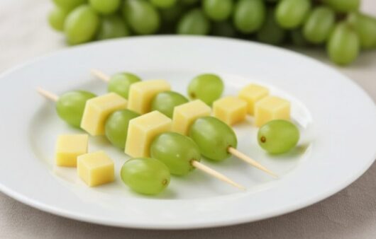 Petisco rápido e refrescante, feito com uvas e cubos de queijo minas. É fácil de montar e ideal para servir em bandejas.