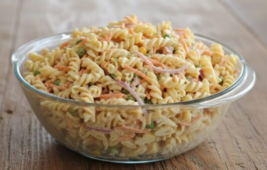 Salada de macarrão fria e cremosa, feita com presunto, queijo mussarela, cenoura e maionese. Uma receita fácil e econômica para o dia a dia.