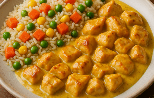 Combinação de frango suculento e arroz vibrante que entrega sabor, cor e praticidade em um só prato.