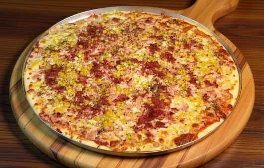 Uma massa de pizza rápida feita no liquidificador, assada em minutos, com um recheio generoso e fácil de personalizar.