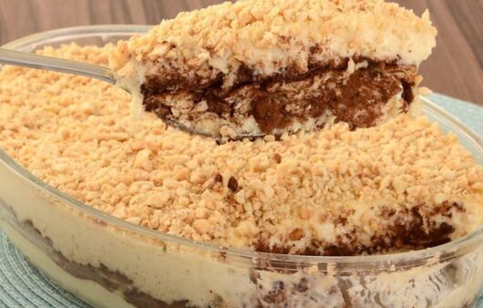 Uma sobremesa prática e irresistível que combina a textura crocante do amendoim com a cremosidade do leite condensado, intercalada com biscoitos e chocolate.
