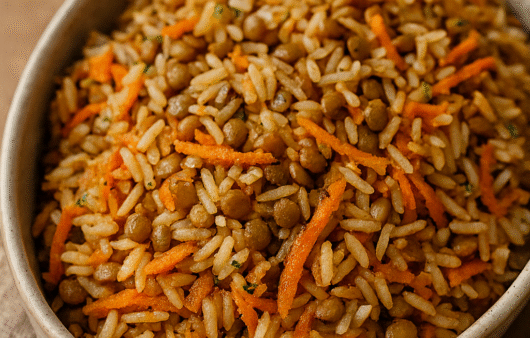 Refeição prática e nutritiva com arroz macio, lentilha rica em fibras e cenoura fresca, simples, econômica e cheia de sabor.