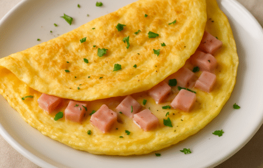 Pronta em 10 minutos e cheia de sabor! Esta omelete fofinha de queijo e presunto é a solução perfeita para refeições rápidas sem deixar de ser nutritiva.