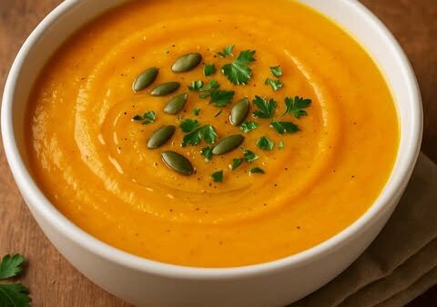 Sopa cremosa e nutritiva de abóbora e cenoura, com temperos simples e aroma irresistível, perfeita para aquecer os dias frios e refeições econômicas.