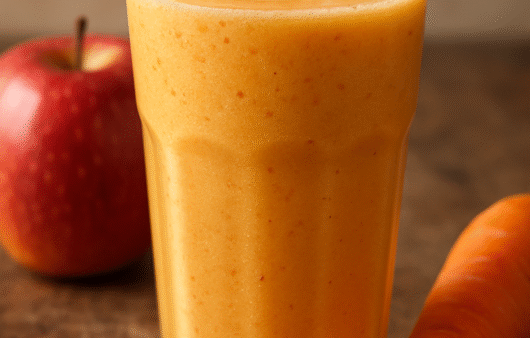 Vitamina leve e nutritiva com maçã e cenoura, rica em fibras e vitaminas, perfeita para um dia saudável sem gastar muito.