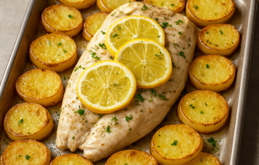 Refeição leve e prática com peixe suculento, batatas douradas e toque de limão, saudável, econômica e perfeita para um jantar rápido e nutritivo.