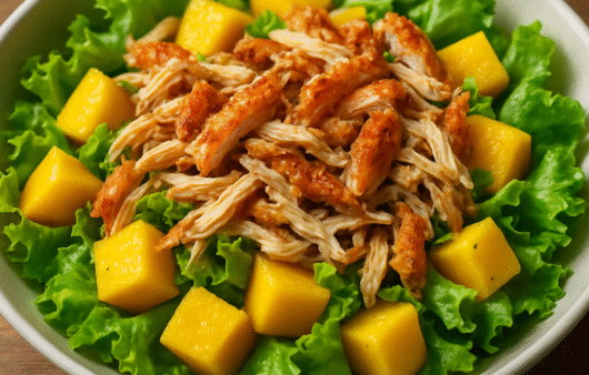 Salada Tropical de Alface, Manga e Frango Desfiado
