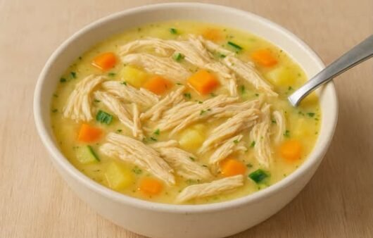 Sopa cremosa com legumes e frango que aquece e reconforta, perfeita para dias de frio ou momentos em que precisamos de acolhimento à mesa.