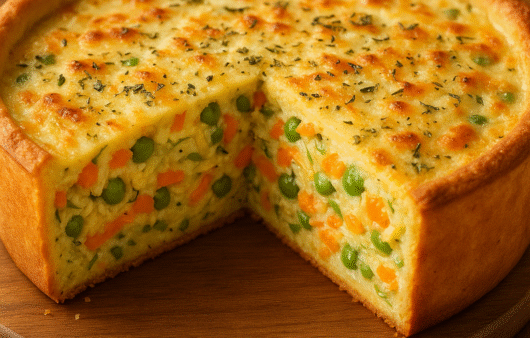 Torta prática e econômica com legumes variados, recheio cremoso e massa leve, perfeita para lanches, jantares ou refeições nutritivas e coloridas.