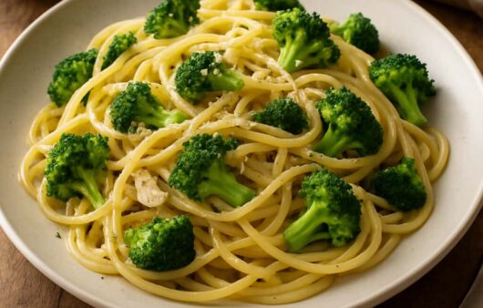 Espaguete leve e nutritivo com alho dourado, azeite e brócolis crocante, pronto em minutos e perfeito para refeições rápidas e econômicas.