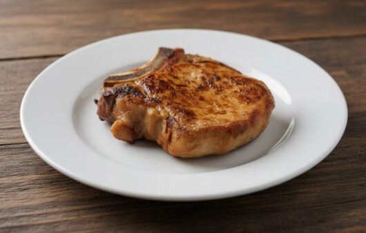 Bisteca de porco grelhada e finalizada com um molho de manteiga, alho, tomilho e raspas de laranja. Suculenta e com sabor agridoce irresistível.