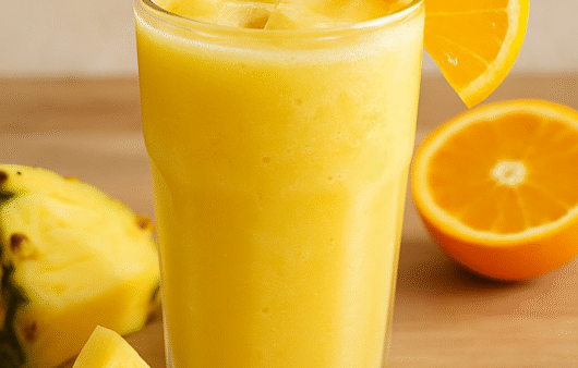 Vitamina refrescante e doce naturalmente com abacaxi e laranja, rica em vitamina C e econômica, perfeita para energizar o dia.